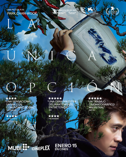 Cineplex, junto a MUBI, la distribuidora global de películas, plataforma de streaming y productora, se enorgullecen en anunciar que la nueva película de Park Chan-wook (Oldboy, Stoker, The Handmaiden, Decision to Leave), LA ÚNICA OPCIÓN (No Other Choice), estrenará en cines de Colombia, Centro América y Ecuador, este jueves 15 de enero, tras su estreno mundial en la edición 2025 del Festival de Cine de Venecia y su premiere mundial en el London Film Festival 2025.