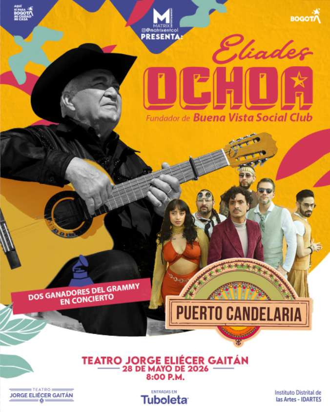 Hay conciertos que se escuchan y otros que se recuerdan para siempre. El próximo 28 de mayo, el Teatro Jorge Eliécer Gaitán será el escenario de uno de esos encuentros históricos: Eliades Ochoa, fundador del legendario Buena Vista Social Club, llega a Bogotá para compartir escenario con Puerto Candelaria, una de las bandas colombianas más