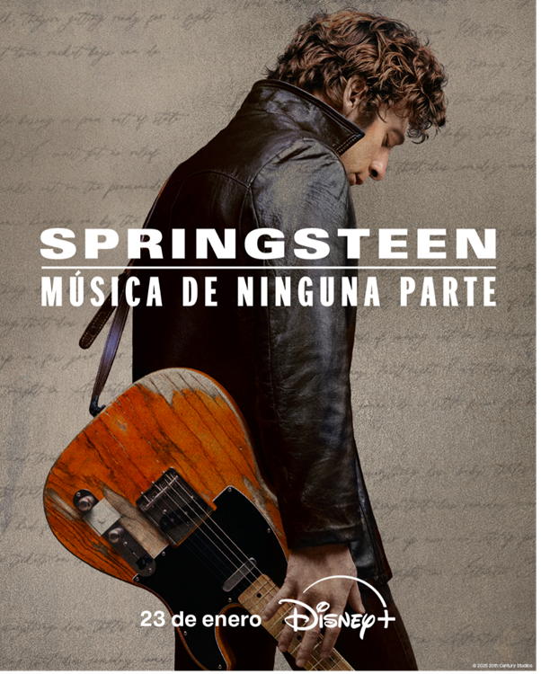 La música y la trayectoria creativa de Bruce Springsteen cobran protagonismo con el estreno de SPRINGSTEEN: MÚSICA DE NINGUNA PARTE este 23 de enero en Disney+. La película ofrece una visión emotiva del proceso creativo detrás de su álbum “Nebraska”, de 1982, y explora las presiones de la ambición, el éxito y el autodescubrimiento. Centrada